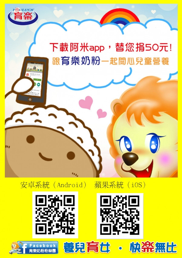 2016/5/7~ 2016/5/30 23:59止,只要您下載阿米計畫APP,我們就會捐50元到育樂的愛心圈。